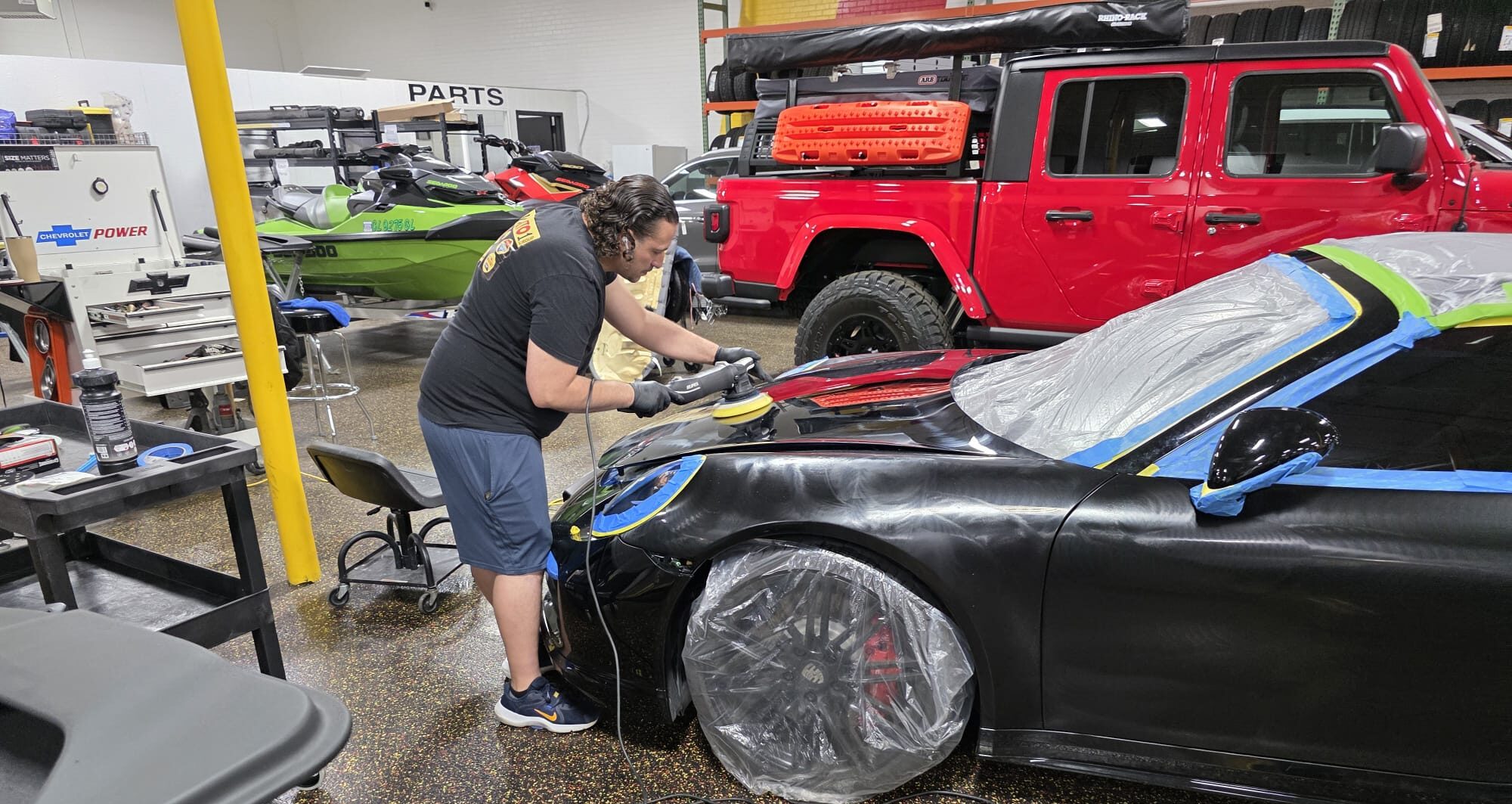- Application of ceramic sealant to boost shine and hydrophobic performance