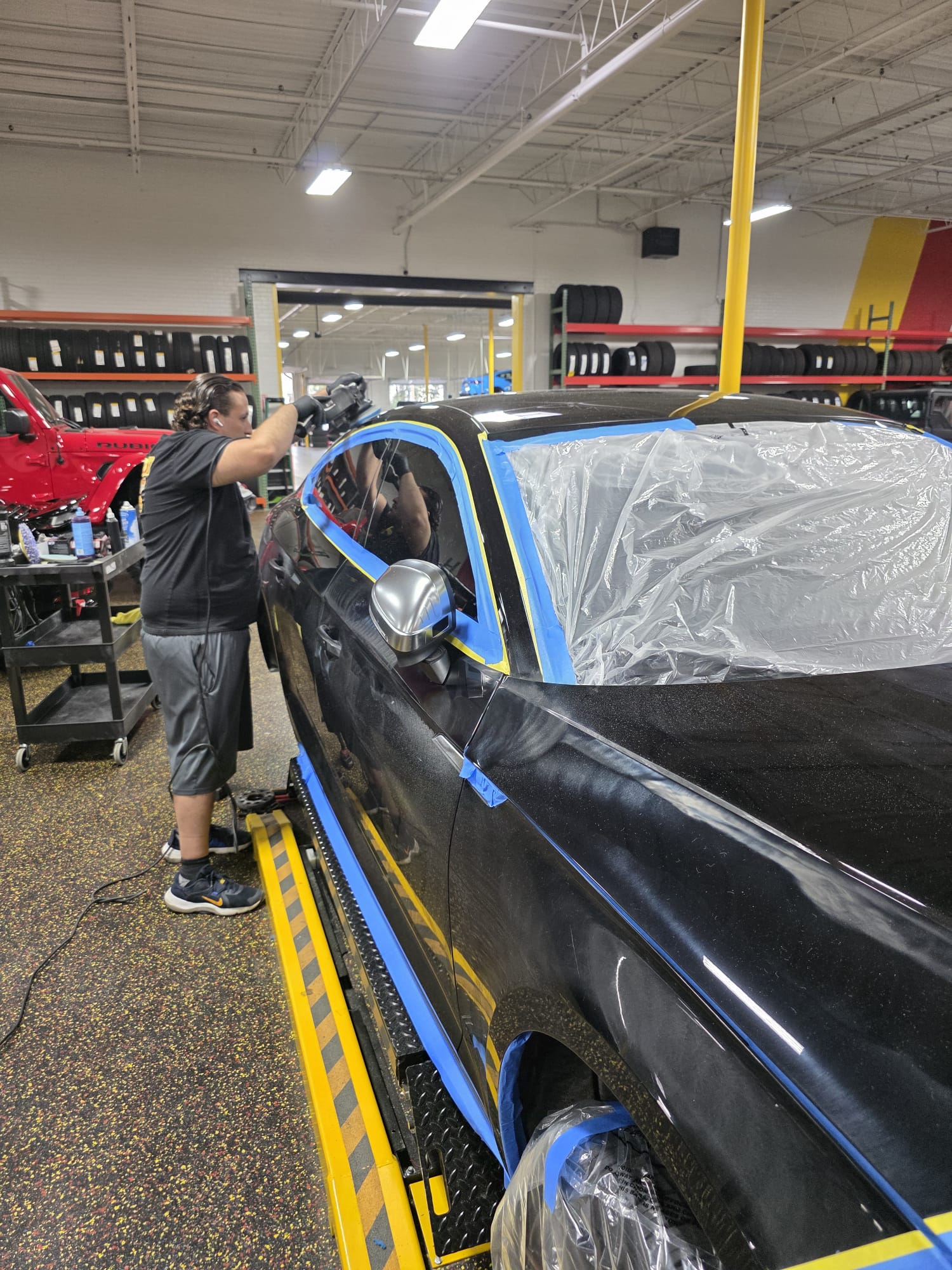 - Application of ceramic sealant to boost shine and hydrophobic performance